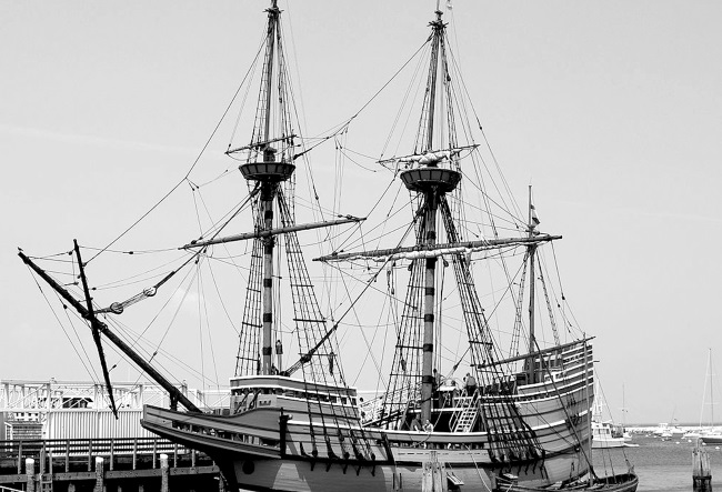 Парусное судно «Мейфлауэр» имело водоизмещение 180 тонн и оказалось тесным для такого количество пассажиров. Но добрались благополучно, в плавание даже родился 103-й пассажир. Так началась Плимутская колония, которая потом выросла в Соединенные Штаты Америки. Корабль больше не оправлялся в столь далекие рейсы, курсируя до 1623 года между Англией, Францией, Испанией и Норвегией.