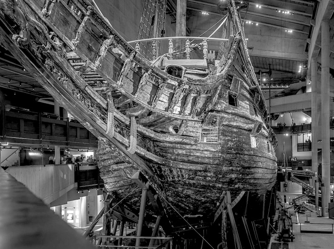 Парусный корабль «Ваза» («Васа») спущен на воду и принят на вооружение в Швеции летом 1628 года (длина 69 м, ширина 11,7 м). Свое название этот галеон получил в честь царствовавшей в то время династии шведских королей Васа. Один из самых больших и дорогостоящих кораблей, он должен был стать флагманом шведского флота, чтобы единолично господствовать над Балтийским морем. Однако из-за конструктивных ошибок при первом своем выходе из Стокгольмской гавани корабль опрокинулся и затонул. Поднятый со дня моря в 1961 году, он был законсервирован, отреставрирован и стал музейным экспонатом. Это единственный в мире сохранившийся парусный корабль начала XVII века. На нем предусмотрены места для размещения 64 пушек.