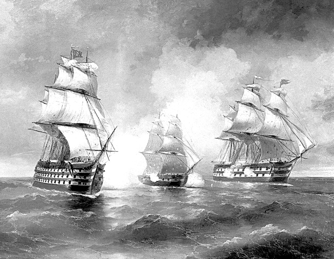 Бриг «Меркурий», атакованный двумя турецкими кораблями
