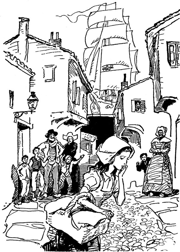 Девочка, вздрогнув, невольно взглянула из-под руки на разлив моря. Затем обернулась в сторону восклицаний; там, в двадцати шагах от нее, стояла кучка ребят; они гримасничали, высовывая языки. Вздохнув, девочка побежала домой.