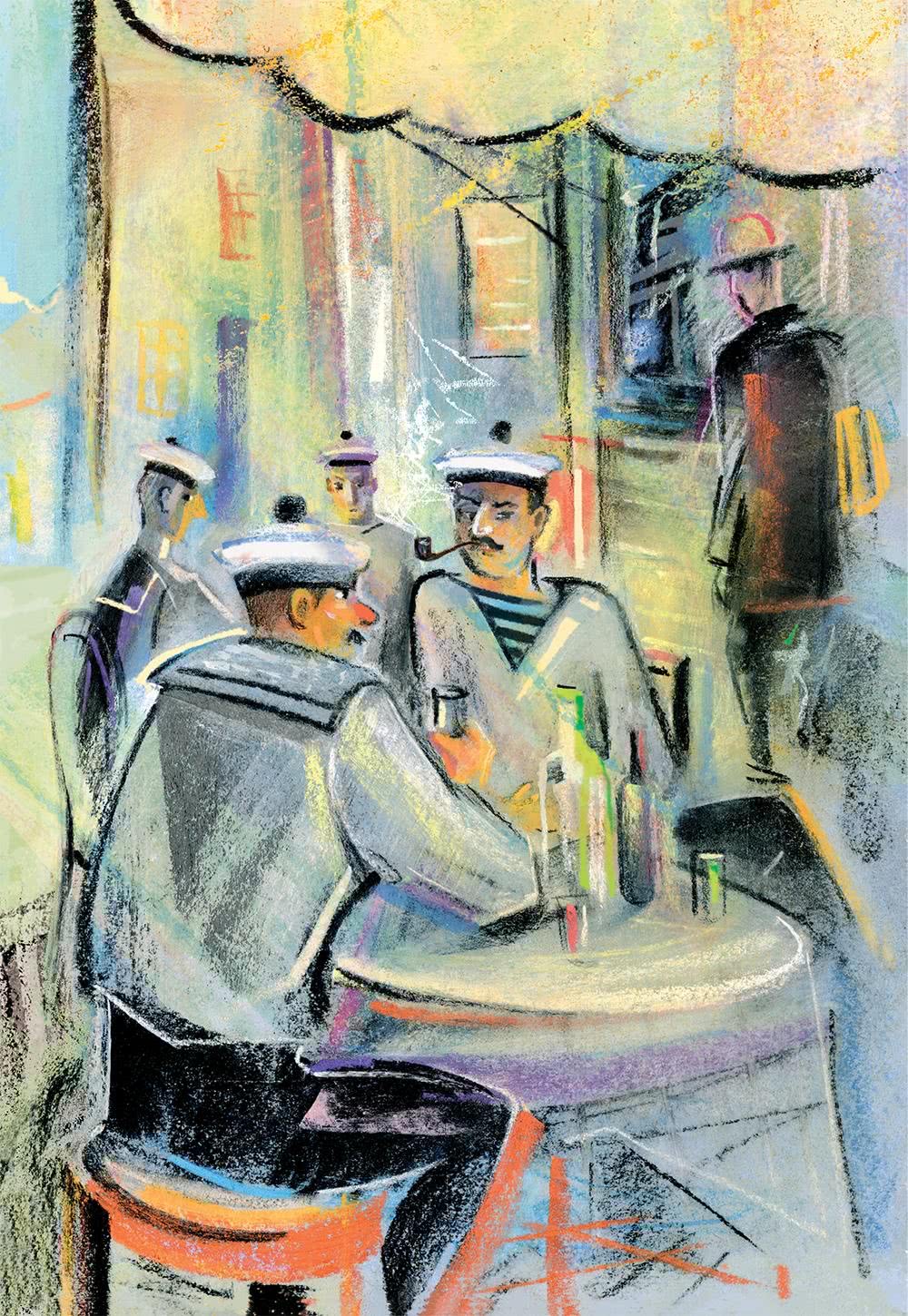 День был горяч, душен, как воздух над раскаленной плитой. Несколько утомясь, я задержал шаг и вошел под полотняный навес портовой таверны утолить жажду.