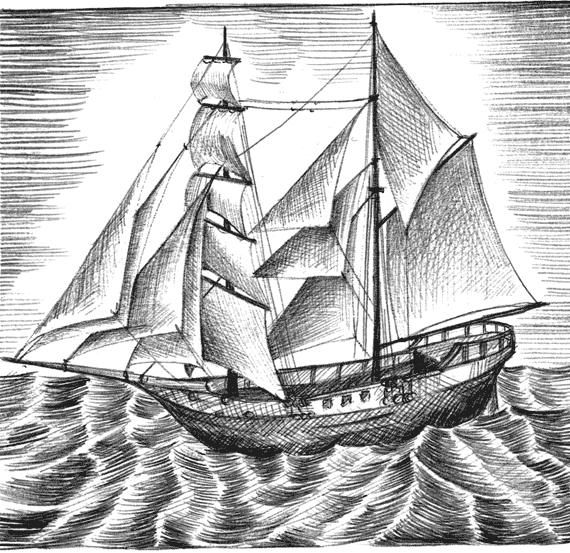 Первые часы отплытия всегда праздничны и напряженны, при солнце или дожде – все равно; поэтому я с нетерпением вышел на палубу. Меня охватило хорошо знакомое, любимое мною чувство полного хода, не лишенное беспричинной гордости и сознания живописного соучастия. Я был всегда плохим знатоком парусной техники как по бегучему, так и по стоячему такелажу[5], но зрелище развернутых парусов над закинутым, если смотреть вверх, лицом таково, что видеть их, двигаясь с ними, – одно из бескорыстнейших удовольствий, не требующих специального знания. Просвечивающие, стянутые к концам рей острыми углами, великолепные парусные изгибы нагромождены вверху и вокруг. Их полет заключен среди резко неподвижных снастей. Паруса мчат медленно ныряющий корпус, а в них, давя вперед, нагнетая и выпирая, запутался ветер.