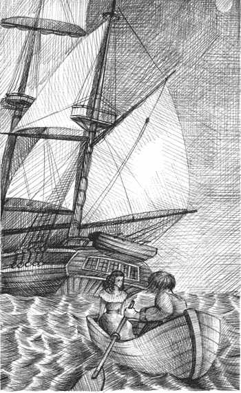 Я оттолкнулся, и нас отнесло волной. Град насмешек полетел с палубы. Они были слишком гнусны, чтобы их повторять здесь. Голоса и корабельные огни отдалились. Я машинально греб, смотря, как судно, установив паруса, взяло ход. Скоро его огни уменьшились, напоминая ряд искр.
