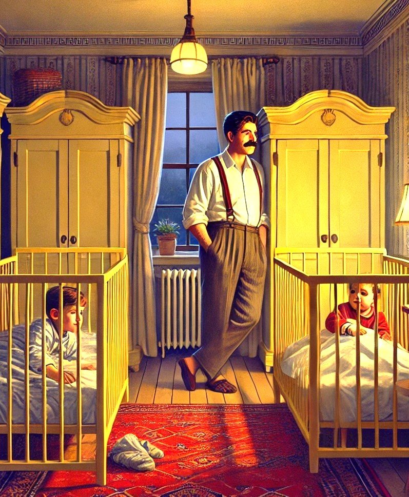 Часы показывали половину десятого вечера. В детской было тихо, но я решил перед футбольчиком на всякий случай заглянуть туда. Саша спал, а младший Ваня, стоило мне войти, привстал в кроватке.