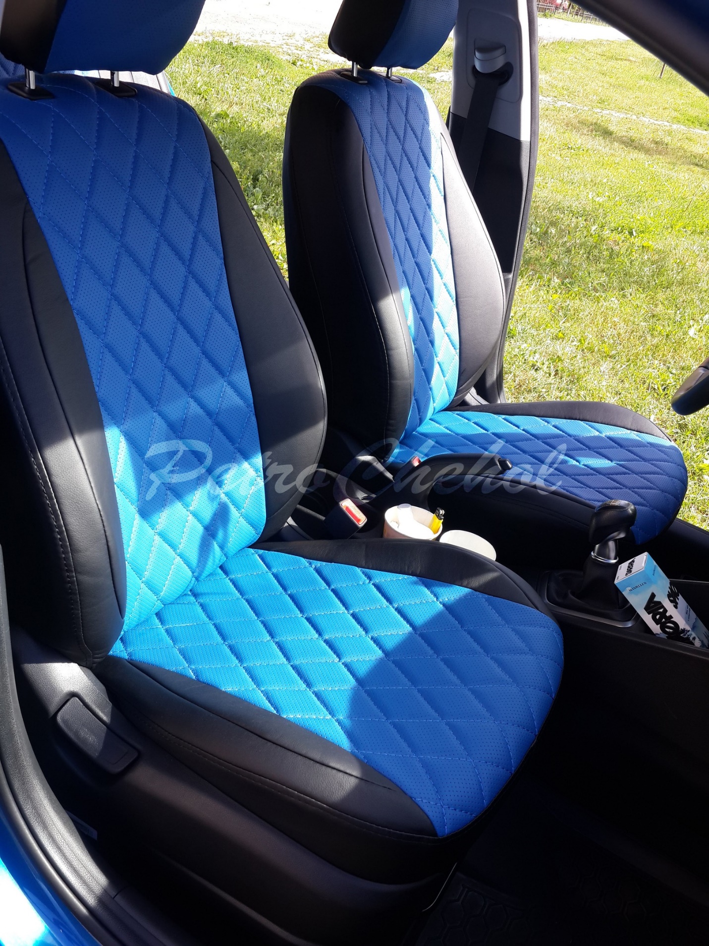 Если вы заметили, то у некоторых фирм ромбы просто обозначены прострочкой. За счет двойного поролона ромбы у наших чехлов получаются выпуклые. Что это дает, кроме красоты? Мягкость для сидения, жесткость основы, не дающей растягиваться.