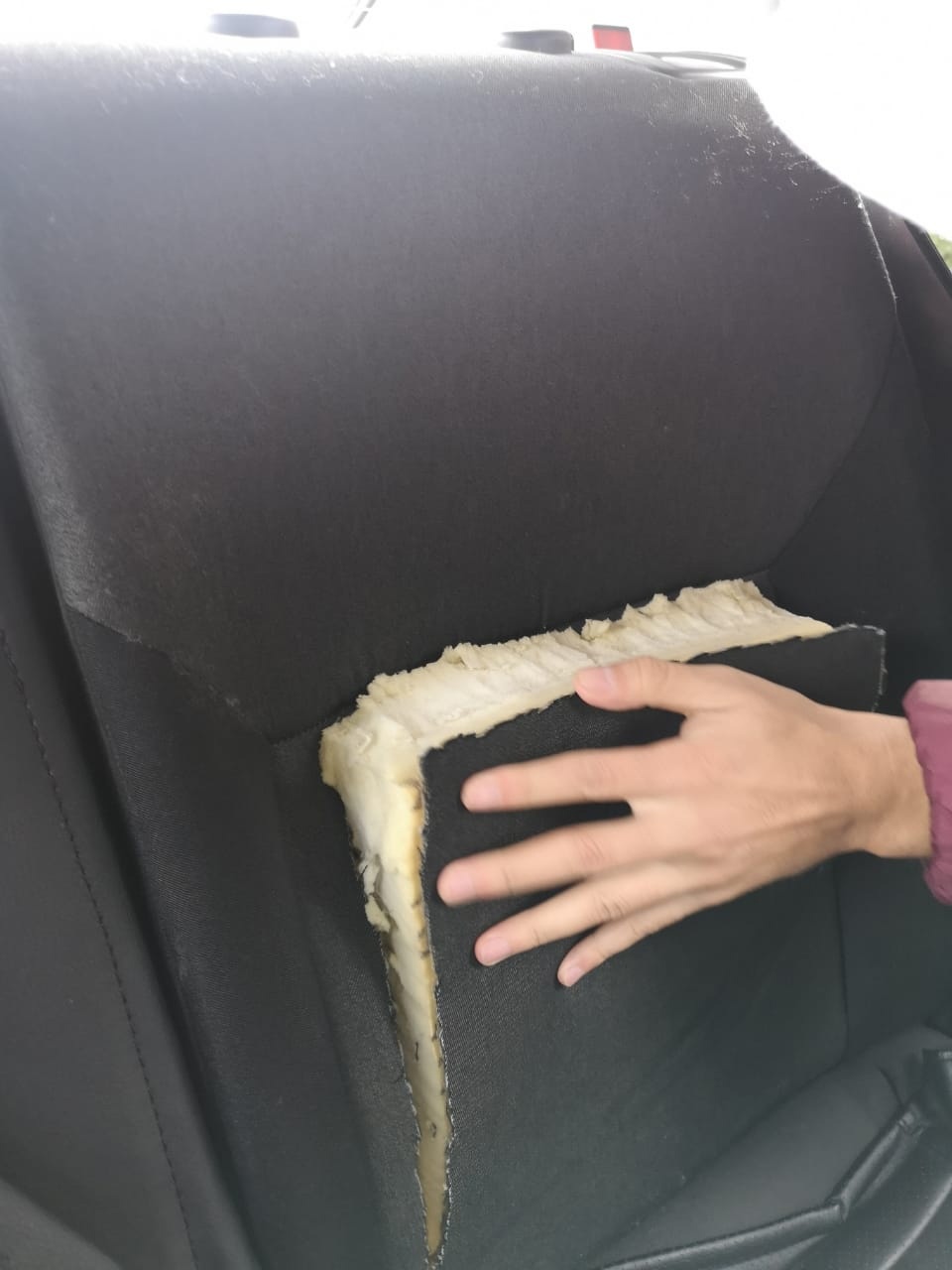 И вот снимаю я старые чехлы и обнаруживаю под ними тайник. Самый настоящий тайник, часть сиденья просто вырезана и аккуратно закрыта чехлами. Пока не стали снимать старые чехлы, никто ничего и не заметил.