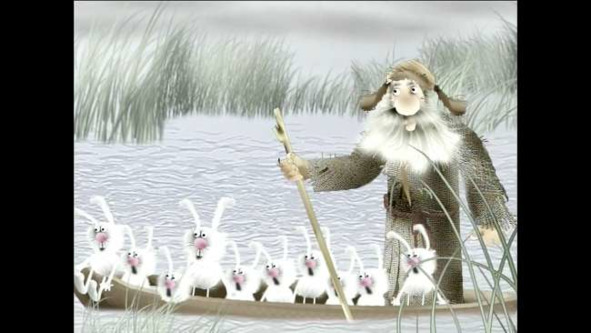 Снег весной в лесу растаял,и везде вода.А для зайцев половодьесущая беда.Сидят бедные на кочках,и как будто ждут.Что за ними приплывут вдруг,от воды спасут.Дед Мазай плывёт на лодке,собирает их.Зайцы сбились в лодке в кучу.Заячий род притих.Только глазки на Мазая,заячьи глядят.– Ты куда везёшь нас деда? —будто говорят.В лодке мало уже места,а зайчиков полно.К берегу скорее плыть-бынадобно давно.К берегу причалил лодкудедушка Мазай.– Ну-ка зайцы, разбегайтесь!Ну давай, давай!Разбежались в поле зайцы,их уж не догнать.А Мазай поплыл обратно,зайчиков спасать.Снег весной в лесу растаял,и кругом вода.А для зайцев половодьесущая беда.