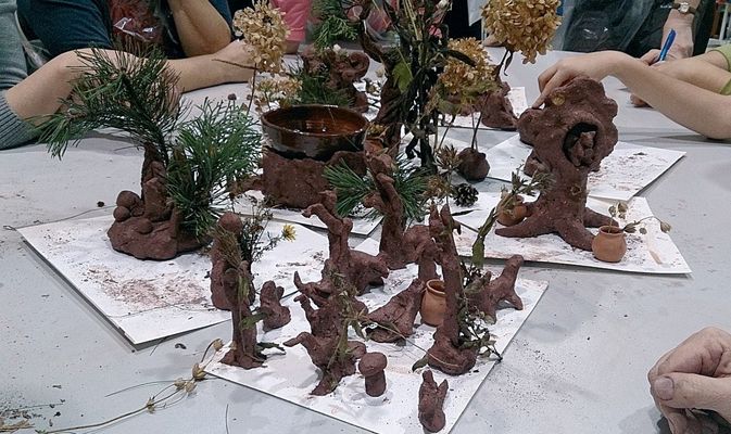 Рисунок 9. Одна из подгрупп в процессе создания «тотема» в виде дерева.