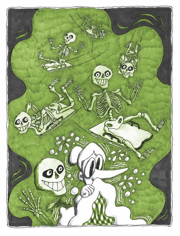 …Эту ночь Ябеда-Корябеда спала тревожно, всё время ворочалась. Ей снился страшный сон: на предстоящих Детских зимних спортивных играх она участвует в соревнованиях по скелетону. И вокруг неё ВСЁ СКЕЛЕТЫ, СКЕЛЕТЫ… (1)[1]