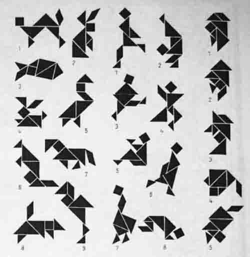 Широко известны головоломки где требуется сложить определённую фигуру из похожих или одинаковых элементов. Такие головоломки стали прообразом современных детских мозаик, наиболее известные из них – так называемые танграмы.