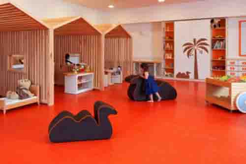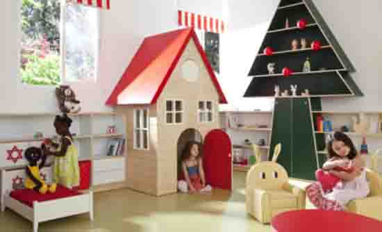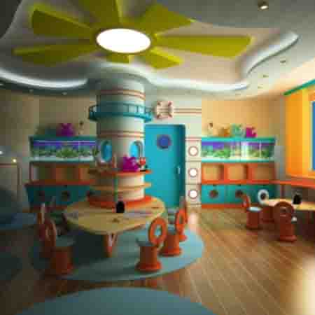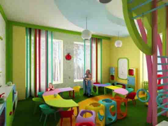 Аналогичный подход характерен и для интерьеров современных детских дошкольных учреждений. На приведённых здесь снимках реализованных интерьеров и проектных предложений мы можем видеть примеры достаточно типичных подходов к организации среды детского сада, независимо от того, являются ли их авторы архитекторами или дизайнерами.