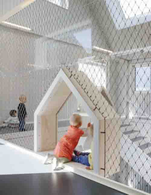 К модным поветриям следует отнести архитектуру и интерьеры с «дырками» – квадратными или круглыми окнами встречающиеся в самых разных странах. Возможно, это действительно помогает детям генерировать определённые игровые ситуации, но, похоже, что главная задача, которую пытаются решить архитекторы, превращая среду детского сада в подобие сыра – это добиться визуального отличия среды для детей от среды для взрослых, рассеять по своему проекту «знаки детскости».