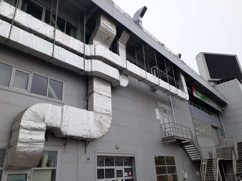 А далее приведу пример того, как сложно потом всё исправить. Без отдельного проектирования дешево и красиво закрыть подобные воздуховоды уже не получится – нет таких “дешёвых” и безопасных технологий, хотя на этапе проектирования вопрос можно было решить весьма изящно.