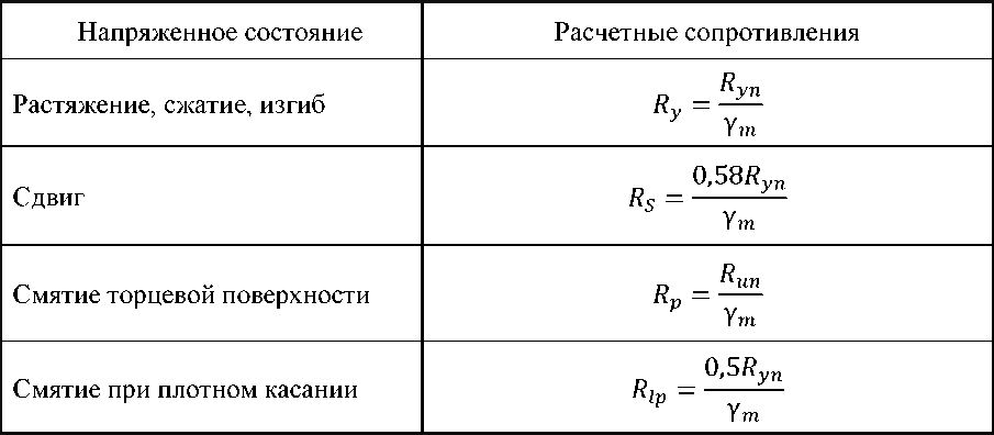 Расчетные сопротивления холодногнутых профилей следует определять по формулам, приведенным в таблице 5.1.8.1.