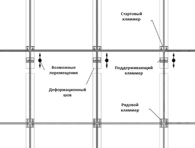 свободных перемещений при деформировании элементов металлического каркаса, облицовочных изделий, обусловленном температурно-влажностными воздействиями (рисунок 5.1.11.1);