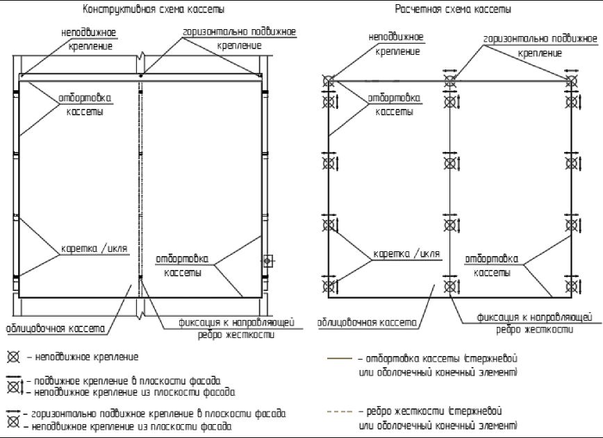 Рисунок 5.1.11.3 – Пример конструктивной и расчетной схем облицовочного элемента