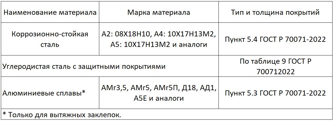 Материалы элементов крепления должны соответствовать ГОСТ ISO 3506 1, ГОСТ ISO 3506 2, ГОСТ ISO 898 1, ГОСТ ISO 898 2, ГОСТ ISO 10684, ГОСТ Р 9.316, ГОСТ 4784, ГОСТ Р ИСО 15977 и требованиям проектной и конструкторской документации.
