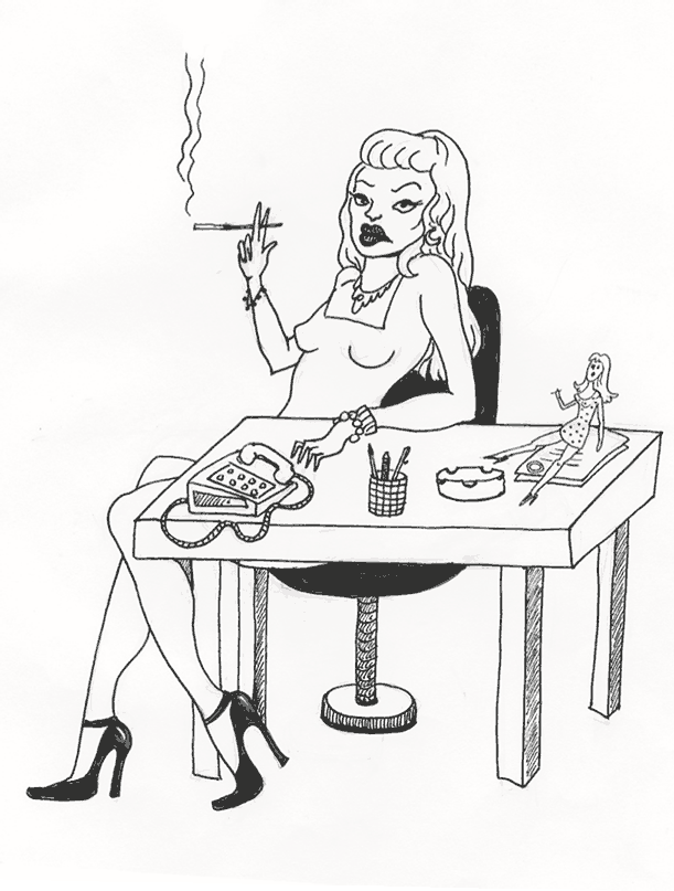 Он проводил её в соседнюю комнату до её рабочего места. За столом напротив сидела секретарша Алина. Перед ней лежала раздетая кукла Барби. Алина надевала на неё кружевные трусики, рубашечку… Увидев Бориса, спрятала куклу в стол, пояснила: