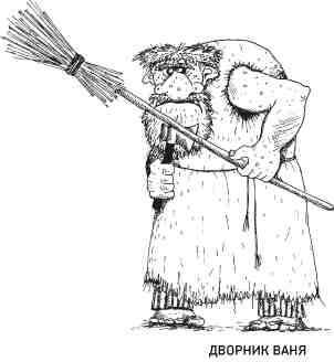В другом подвале, напротив, жил одинокий дворник Ваня. Зимой он ходил в замасленной телогрейке, летом – в рубашке из мешка: прорезал в мешке дыры для головы и для рук – получилась безрукавка, которую он подпоясывал веревкой. У него в комнате стояли козлы, он всё время пилил и рубал: дрова, доски, собственную мебель. Во двор выходил всегда с топором. Когда подметал, топор торчал у него за поясом. И в магазин он шел всегда с топором, и в поликлинику. Мы, дети, подсмотрели, что он не пользуется ножом: и хлеб и колбасу он не нарезал, а отрубал. На лице у него торчала неопрятная, клочковатая щетина – очевидно, он и брился топором.
