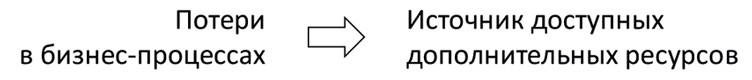 Потери ресурсов в наших процессах, к сожалению, очень велики и даже могут превышать 40 % общего объема. И это не уникальный случай, а весьма часто повторяющаяся ситуация в любой бизнес-деятельности.