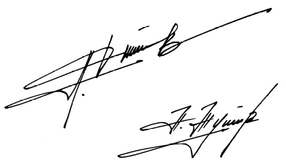 Конец подписи направлен немного вниз – человек подвержен пессимизму. Подпись длинная – он не любит спешить, вникает в детали. Три заглавные буквы говорят о предпочтении к умственному труду. Буквы во второй части более резкие и острые, значит, к делам приступает более спокойно, но к концу становится вспыльчив, нетерпелив. Большое количество разрывов свидетельствует о непредсказуемости поступков. Желает, чтобы на него обратили внимание. Судя по размашистости, он стратег, ставит глобальные цели.