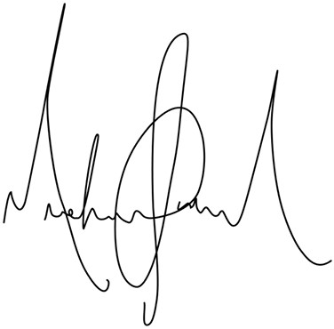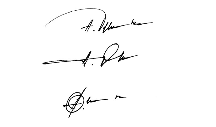 Подпись достаточно размашистая – он смотрит далеко вперед, мыслит глобально. Что касается расстояния между буквами, уверенно можно сказать, что человек очень щедрый. Хвост короткий, значит, все замечания в свой адрес он воспринимает серьезно. Подпись ровная – он сдержан, контролирует себя.