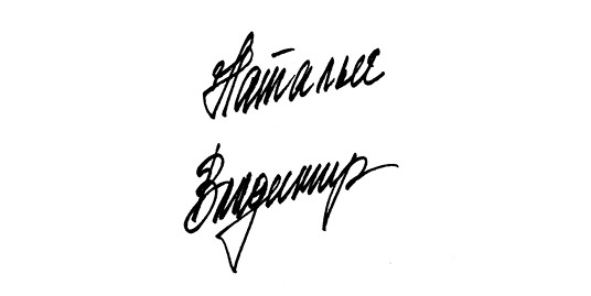 По длине подписи видно, что в творческих делах не любит спешки, продумывает все детали, каждую мелочь. В работе проявляет упрямство, очень придирчив к себе и к окружающим. После завершения подписи возвращается, чтобы ее доработать, то есть, закончив дело, он всегда возвращается к началу, доделывает, меняет. Хочет, чтобы все было совершенно, идеально.