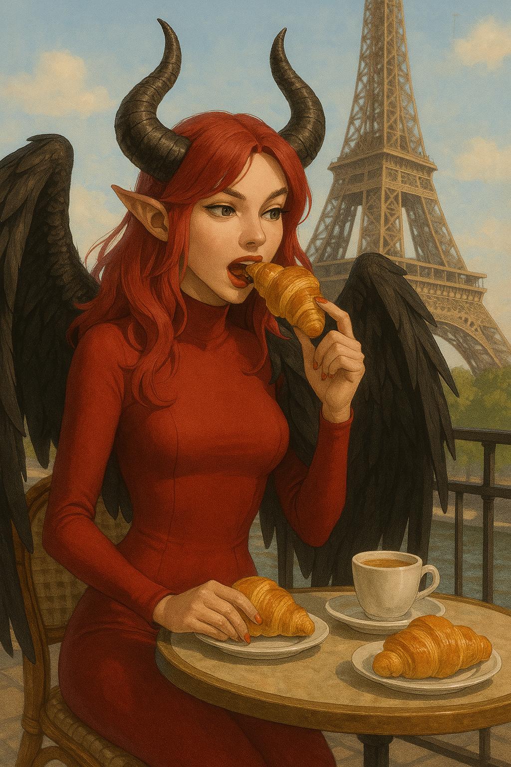 Роб пожал плечами и повёл её в уютное кафе «Le Renard Doré» – «Золотой лис», как гордо перевёл он название. Внутри было тепло и пахло кофе, стены украшали голографические картины с видами старой Франции, а столики из тёмного дерева были накрыты белыми скатертями. Они сели у окна с видом на Эльфийскую башню, и Элис тут же схватила меню.