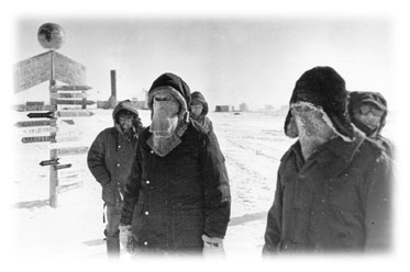 Одевшись потеплее, я засунул камеру за пазуху и вышел на улицу. На поверхности ледяной пустыни выделялись только дымящая труба дизель-электростанции и вышка буровой. Пройдя метеоплощадку, направился к двум антеннам возле аэродрома. Достаточно бодро вскарабкавшись по ступеням на пару десятков метров в высоту, достал камеру и фотоаппарат, чтобы снять общий план «Востока». Сразу пожалел, что не взял с собой страховочного пояса – держать одной рукой камеру было неудобно, вторую отпустить боязно. Успокоив дыхание, кое-как снял несколько кадров и, закинув на шею ремень от аппаратуры, намертво вцепился в металлические прутья вышки. В этот момент силы меня покинули.