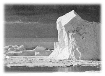 Наконец, проснувшись однажды утром, выглянул в иллюминатор и увидел мерно покачивающуюся гладь океана, заполненную круглыми блинами льда. С мостика виднелись уже более обширные поля и обломки айсбергов.