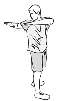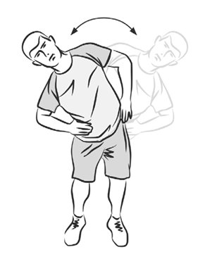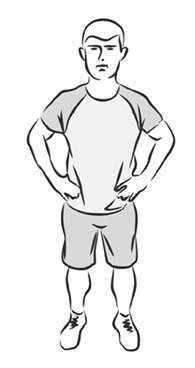 1. И. п. (исходное положение) – ноги на ширине плеч, руки на поясе. Вращение туловища. Сначала в одну сторону, потом в другую. Можете начинать вращение в любую сторону. Разницы в этом нет. Кстати, я начинаю почему-то вращение по часовой стрелке. А вы? Как вам удобнее? Сколько раз вращать, спросите вы. Начинайте по 10 раз в каждую сторону, не ошибетесь. (Рис. 1)