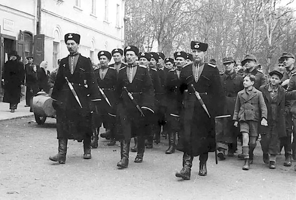 И бывшие белогвардейцы откликнулись на призывы. «Сколько же эмигрантов и их взрослых детей пошли в формируемые гитлеровцами „русские части“? Анализ разрозненных данных позволяет с определённой долей уверенности говорить, что речь идет примерно о 30 % способных носить оружие эмигрантов в возрасте от 18 до 60 лет, проживавших в оккупированных немцами или союзных им странах. Одним из наиболее массовых формирований был Русский охранный корпус, созданный к 12 сентября 1941 года на территории Югославии», – утверждает Леонид Решетников (кстати, современный монархист) в докладе на научной конференции «К вопросу о позиции белой эмиграции во время Великой Отечественной войны 1941–1945 гг.» (https: //www.perspektivy.info/print.php? ID=88828).