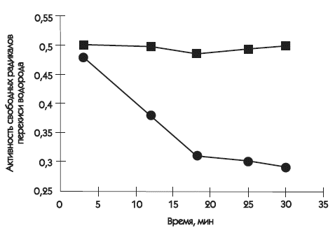 А вот доказательство того, как живая вода усиливает действие витаминов и других антиоксидантных веществ в организме. На рисунке 9 из той же книги Дины Ашбах показано, как редуцированная вода усиливает антиоксидантную активность перекиси водорода.