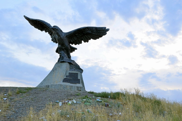 Донской орёл, донских степей!Спустился к Шолохову на юбилей…На курган высокий сел,Посмотрел на беспределИ как-то сильно заболел,Да! Быстро здесь окаменел.Превратился в памятник большой!Народ пошёл к нему гурьбой…Чтоб за крыло большое взяться,С донской степью пообщаться.Туристы едут и идут,Орла степного конечно чтут…Как говорится на Руси!Орла степного, обожают от души…Чтоб за них не забывали,Память все здесь оставляли…То бутылки здесь бросают,То бумагу все оставляют.Девки ночью здесь бывают!Кой-когда… нижнее бельёздесь забывают…Впрямь загадили орла!Такого степь родная не ждала.Веками красотой она цвела!Пока здесь не было орла…Хотя орёл не виноват!Всему виной людской наш брат.Где человек наш отдыхает…Мусором в округе засоряет,А если б урна, – стояла здесь!То мусор в урне бы исчез…Но урны нету там нигде,Вот и сорят у орла везде.Сельская администрация знает!Но мер как видно не принимает…Хотя зарплаты получает.
