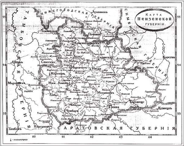 Карта Пензенской губернии (источник: www.nlomov.net)
