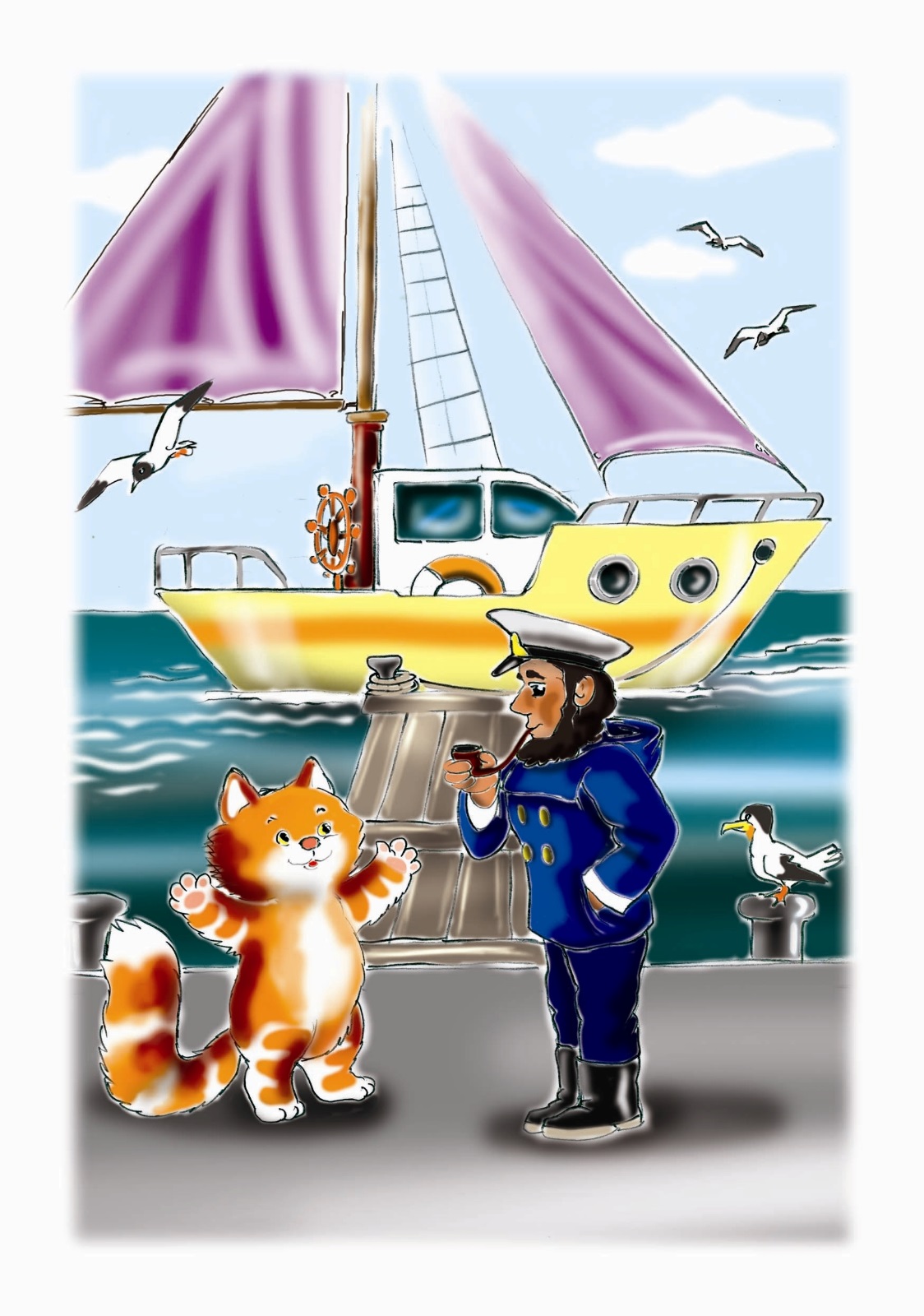 Утром, с первыми лучами солнца, он прибыл на железнодорожную станцию и сел на поезд, шедший до ближайшего портового города. Добравшись до порта, Киск начал выяснять, какие корабли идут в Дальние страны. Увы, ближайший корабль отправлялся только через месяц. Такого удара Киск не ожидал! Он понуро брёл вдоль берега, пока не дошёл до конца пристани. Здесь швартовались уже не большие корабли, а только яхты. И лишь на одной из них кто-то был – из кубрика этой яхты слышался шум: там шёл разговор на повышенных тонах. Вдруг дверь кубрика с треском распахнулась, и на палубу выскочил кок. Киск сразу понял это по белому колпаку. Вслед за коком показался бравый обветренный моряк. Он сказал: «Ты уволен – кроме яичницы, ты не умеешь готовить ни-че-го!». Кок повесил колпак на штурвал и сошёл с яхты на берег.