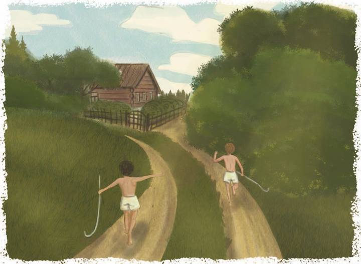 Большая советская энциклопедияЛетний жаркий день. Я и мой друг и ровесник Муха бежим по пыльной улице, толкая стальным прутиком, закрученным на конце крючком, металлический обруч из-под селедочной бочки. На нас большие выцветшие ситцевые трусы с пришитыми нашими матерями карманами. Мы босиком выбиваем пыль, представляя, что мы гонщики и управляем спортивным аппаратом. В карманах у нас с Мухой лежат асычки и по десять копеек на киношку. Это для нас целое богатство.