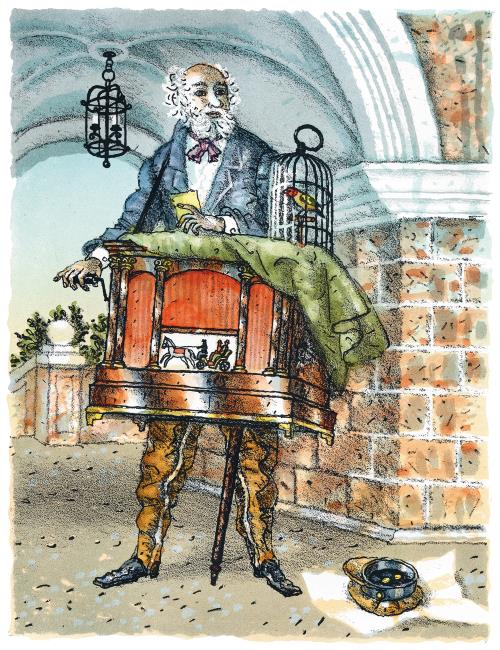 Старик на ходу привычным движением плеча поправил на спине шарманку и вытер рукавом вспотевшее лицо.