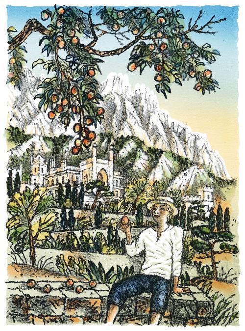 – Дедушка Лодыжкин, а дедушка, глянь-кось, в фонтане-то – золотые рыбы!.. Ей-богу, дедушка, золотые, умереть мне на месте! – кричал мальчик, прижимаясь лицом к решетке, огораживающей сад с большим бассейном посредине. – Дедушка, а персики! Вона сколько! На одном дереве!