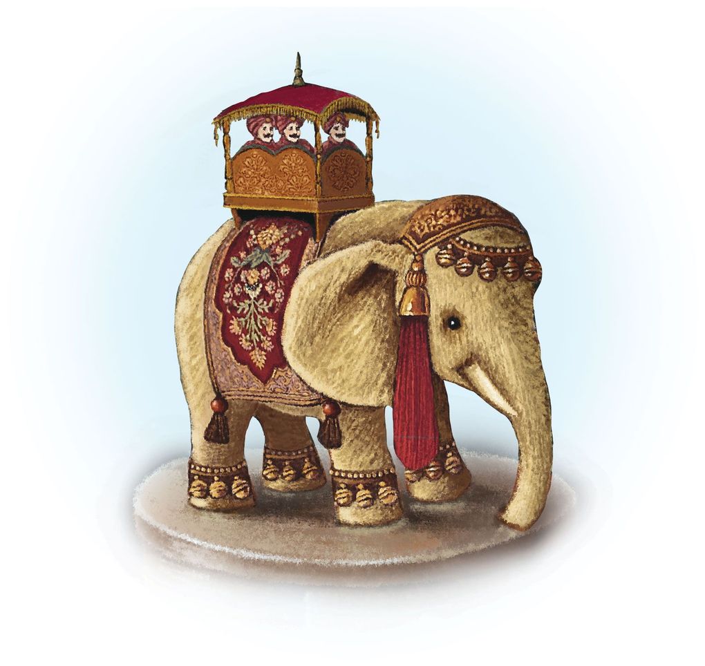 Она идёт в кабинет и говорит папе, что девочка хочет слона. Папа тотчас же надевает пальто и шляпу и куда-то уезжает. Через полчаса он возвращается с дорогой, красивой игрушкой. Это большой серый слон, который сам качает головою и машет хвостом; на слоне красное седло, а на седле золотая палатка и в ней сидят трое маленьких человечков. Но девочка глядит на игрушку так же равнодушно, как на потолок и на стены, и говорит вяло:
