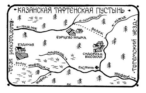 Упомянутый в «разбойном деле» старца Ферапонта Спасо-Евфимьев мужской монастырь находился в 25 верстах западнее деревни Бурцева (Нишмы). Он стоял на правом берегу реки Сямжены, напротив городища Чудин Вал. Ряд деревень Рубежской волости (стана) принадлежали этой обители: Ездунья, Пирогово, Евсютино и другие[30]. Можно предположить, что именно в ней и принял постриг старец Ферапонт, ставший затем, судя по всему, основателем «новой» пустыни на реке Тафте.