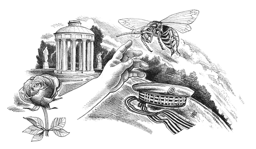 Над розой сейчас летал крохотный полосатый монстр. Его прозрачные крылья гудели, а мохнатые, рахитично полусогнутые ножки с острыми коготками нащупывали опору. Наконец он зацепился за упругий лепесток и повис на нем. Хрустальные глаза, словно зеркала, отразили голубую траву и сидящего перед цветком ребенка.