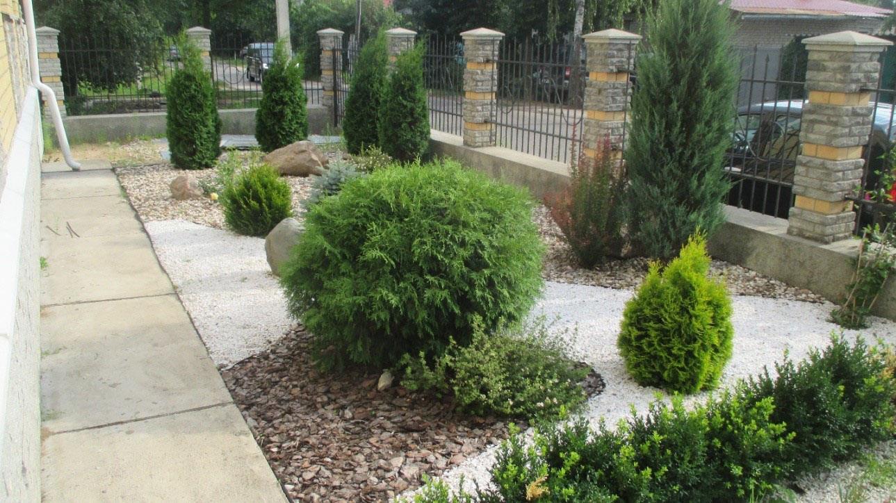 цветнике должны сохраняться интересные растения: хвойные различных форм и окраски, ярко