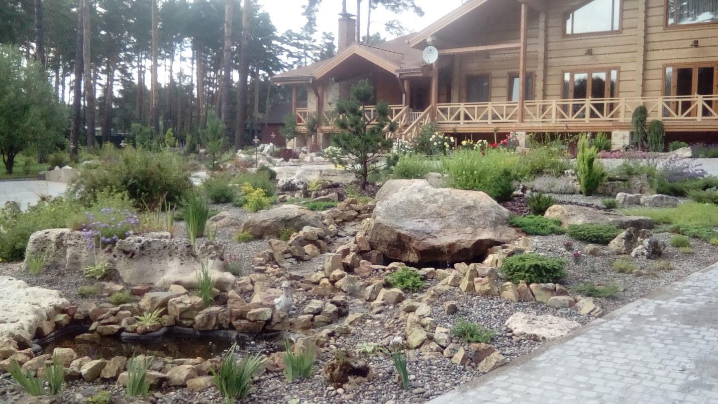 Хотят альпийскую горку, розарий, много камней, местные травы, группу хвойников… Может