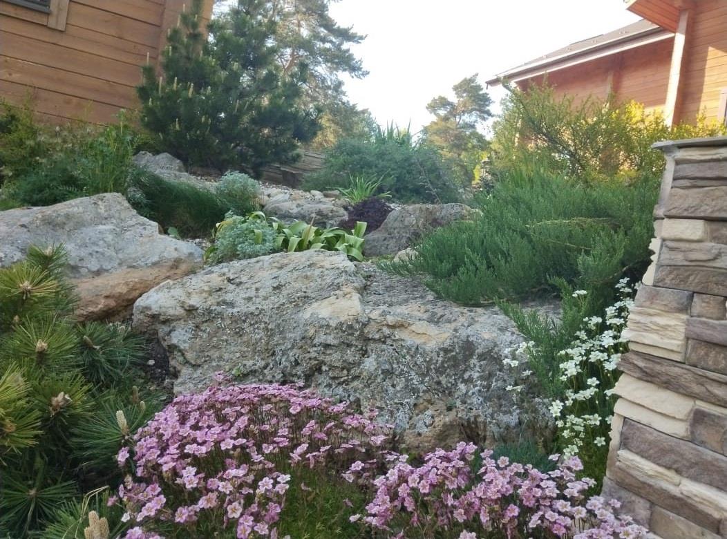 камнями. Но как правило дополняют еще и травянистыми цветущими многолетниками. Частные