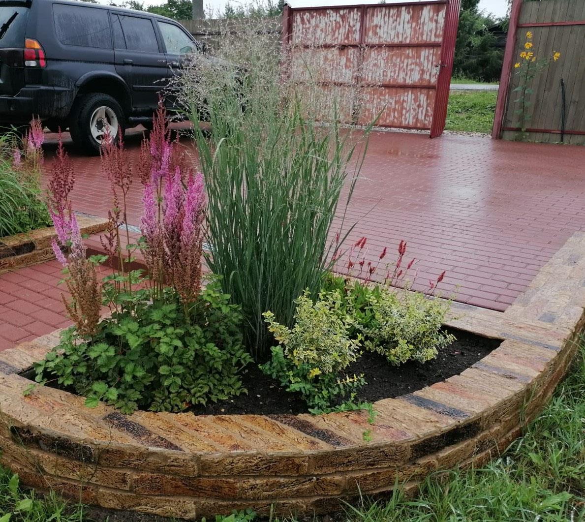 Ступенчатая форма клумбы. При таком формате посадки растений на клумбу начинаем с низкого