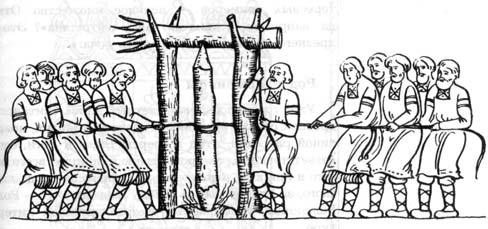 Если Деды не велят, то быть по сему. Вожди между собой на общий совет собирались и решали все вопросы, ни дать ни взять – Совет атаманов. Сами о себе Вятичи книг и летописей не оставили. Почему? А много казаки сами про себя пишут? Все пишут о них и какие-то совершенно посторонние люди. Вот что пишет о Вятичах, их «доброжелатель» монах из Киево-Печерской лавры вначале XII в. в «Повести Временных лет». «А радимичи, вятичи и северяне имели общий обычай: жили в лесу, как звери, ели все нечистое, и срамословили при отцах и при снохах, и браков у них не бывало, но устраивались игрища между селами, и сходились на эти игрища, на пляски и всякие бесовские песни и здесь умыкали себе жен по сговору с ними, имели по две и по три жены. И если кто умирал, то делали по нему тризну, а затем делали большую колоду (костер) и возлагали на эту колоду мертвеца и сжигали, а после, собрав кости, вкладывали их в небольшой сосуд и ставили на столпах при дорогах, как делают и теперь еще Вятичи». Столп – это небольшой сруб без окон на высоком пне, в сказках это избушка на курьих ножках. Почему? Это уже другая интересная история. И сейчас мы ставим на путях памятные кресты. И чего в жизни наших предков, даже в злопыхательском изложении, противоречит нашей душе? Не уму, – душе.