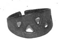 общая длина – 13,7 мм; ширина у основания – 11,8 мм; ширина средней части – 14 мм; ширина у острия – 7,2 мм; отверстие диаметра – 4,3 мм; толщина у острия – 3,5 мм толщина средней части – 8 мм; толщина у задней части – 8 мм;