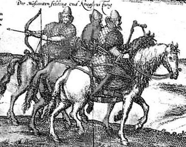 Русская кавалерия. Рис. из плана г. Москвы С. Герберштейна 1556 г.