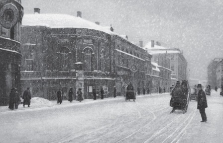 Москва зимой. Вид Тверской улицы у Леонтьевского переулка. Открытка начала XX в. изд. «Шерер, Набгольц и К°». Частная коллекция